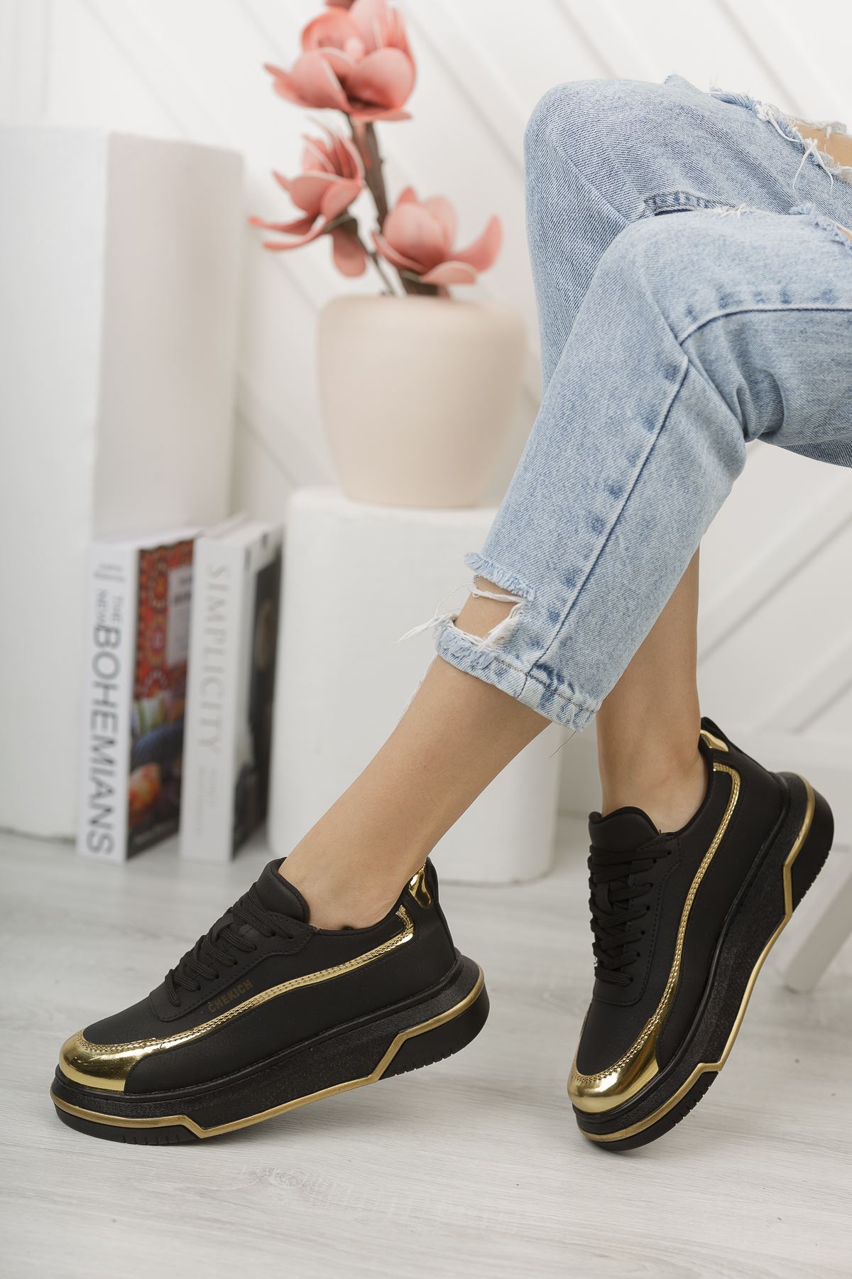 CH041 CST Renaissance Kadın Ayakkabı SIYAH/ALTIN
