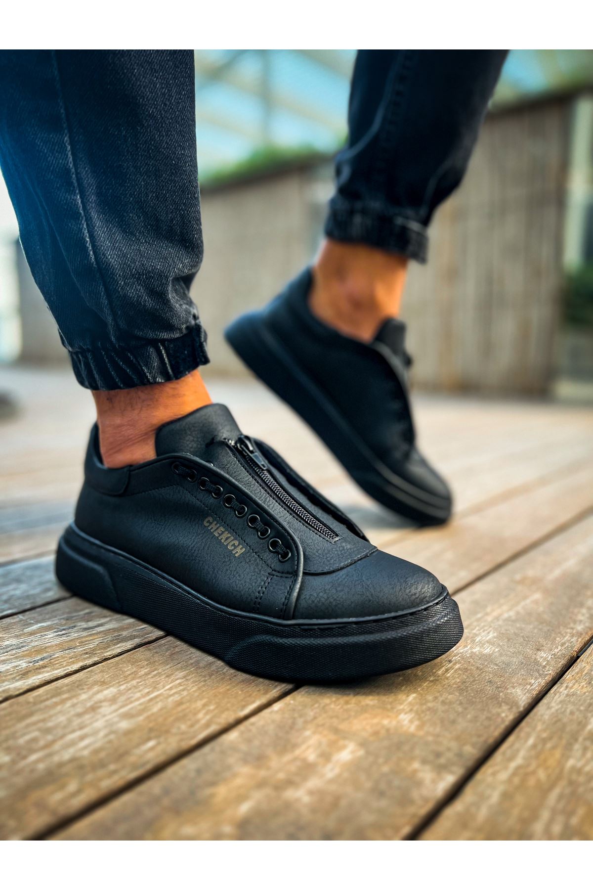 CH092 GST Zip Style Erkek Ayakkabı SIYAH/SIYAH